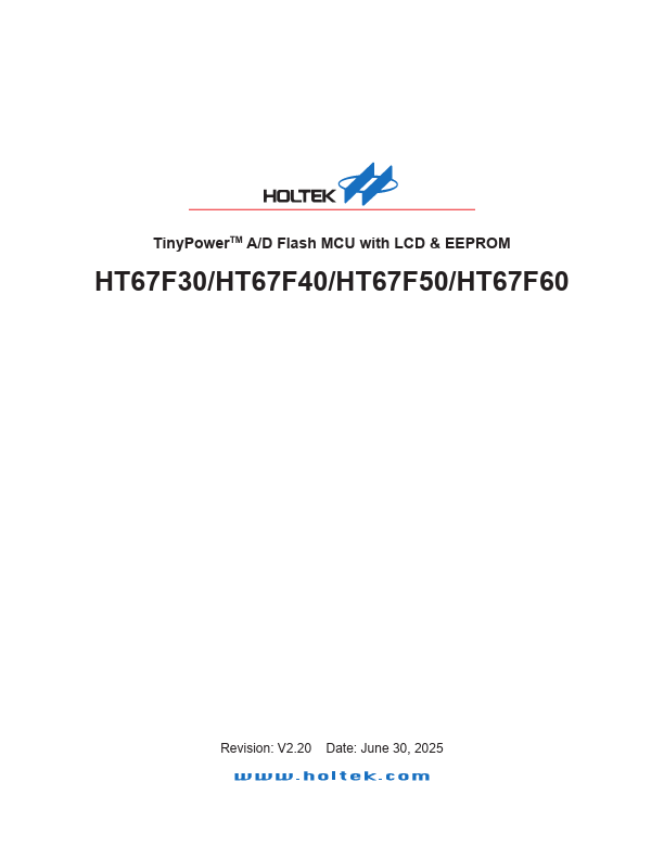 The HT67FXX series of devices are Flash Memory A/D with LCD type 8-bit high performance RISC architecture microcontrollers, designed for applications that interface directly to analog signals and which require an LCD interface. Offering users the convenience of Flash Memory multiprogramming.