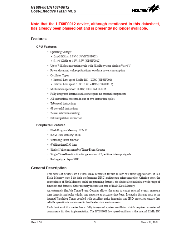 HT68F001 Description