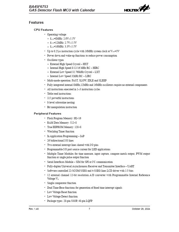 BA45F6753 Key Features