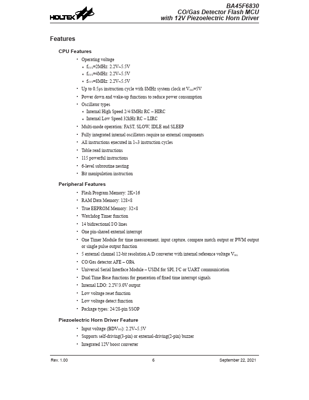BA45F6830 Key Features