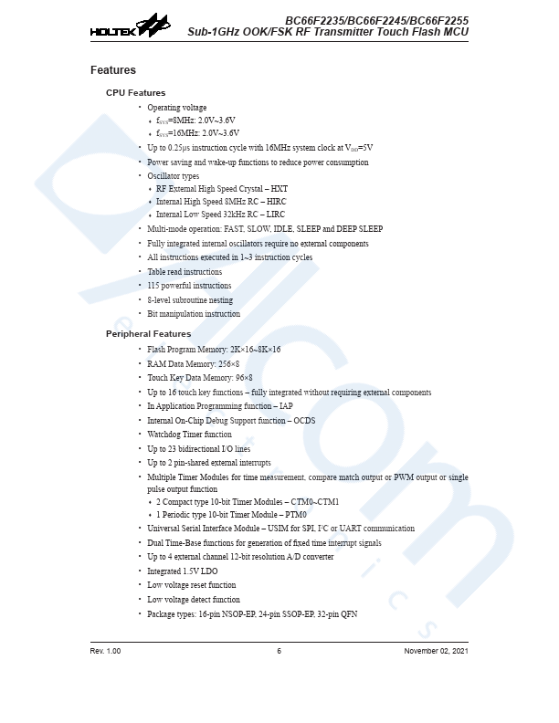 BC66F2255 Key Features