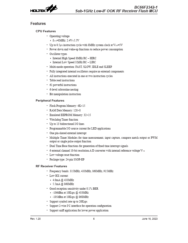 - Multi-mode operation: FAST, SLOW, IDLE and SLEEP