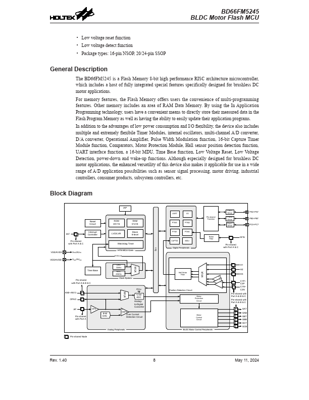 The BD66FM5245 is a Flash Memory 8-bit high performance RISC architecture microcontroller, which includes a host of fully integrated special.