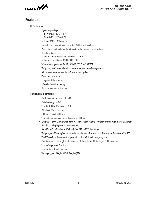BH66F5355 Key Features
