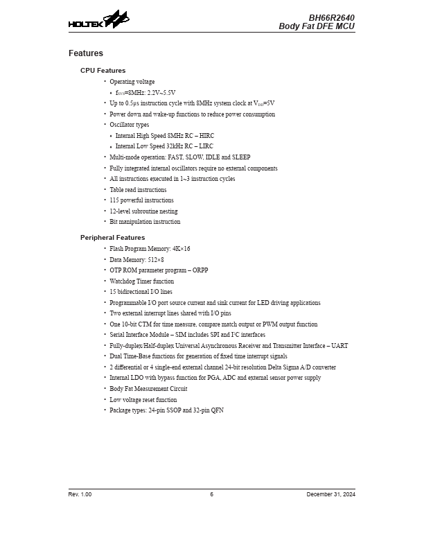 BH66R2640 Key Features