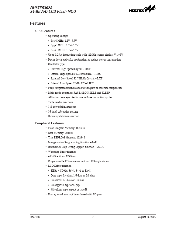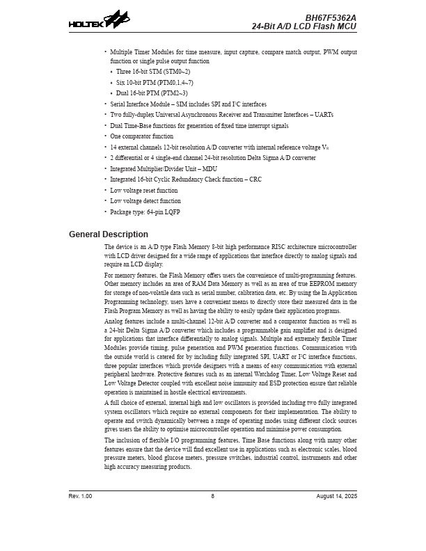 BH67F5362A Key Features