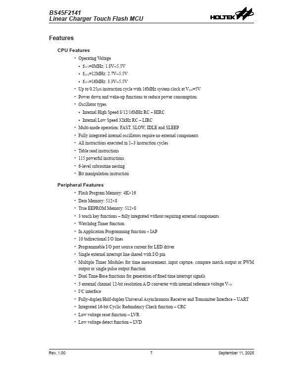 BS45F2141 Key Features