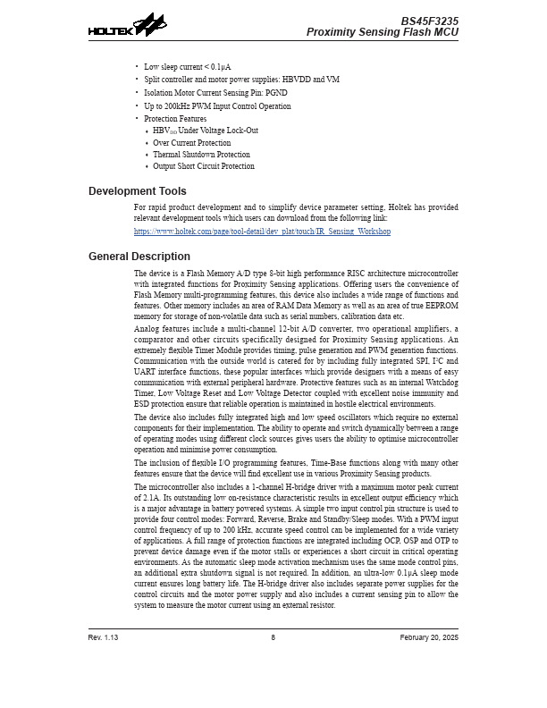 The device is a Flash Memory A/D type 8-bit high performance RISC architecture microcontroller with integrated functions for Proximity Sensing applications. Offering users the convenience of Flash Memory multi-programming.