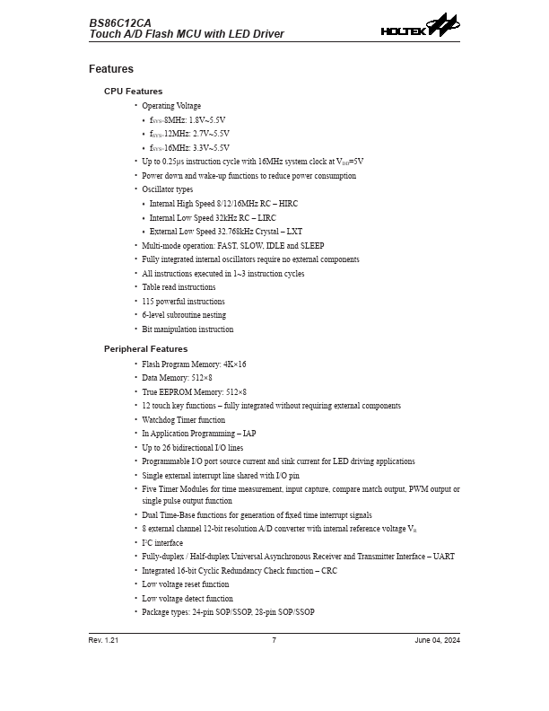 BS86C12CA Key Features