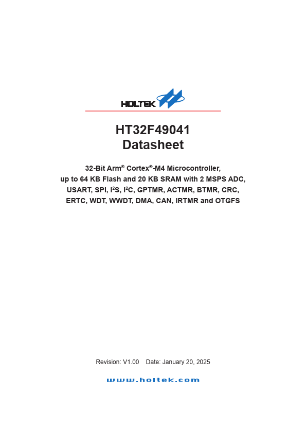 HT32F49041 is 32-Bit Microcontroller manufactured by Holtek Semiconductor.