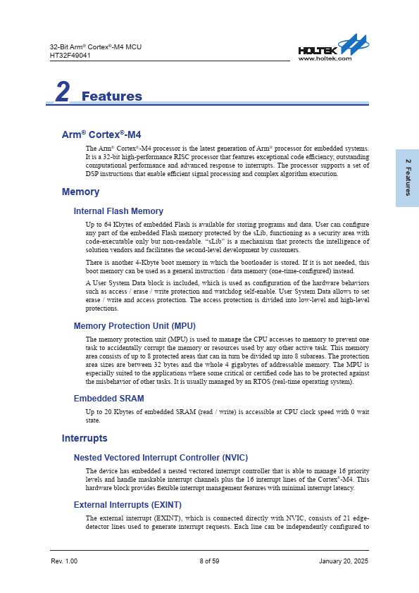 32-Bit Arm® Cortex®-M4 MCU HT32F49041 1 General Description The HT32F49041 device is based on the high-performance Arm® Cortex®-M4 32-bit RISC core running up to 96 MHz.