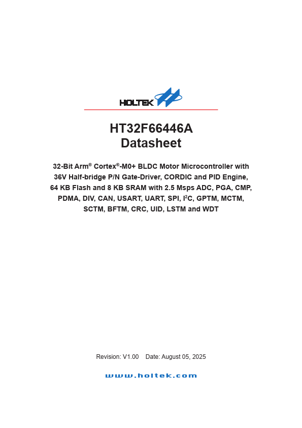 32-Bit Arm® Cortex®-M0+ BLDC Motor MCU with 36V Half-bridge P/N Gate-Driver, CORDIC and PID Engine HT32F66446A