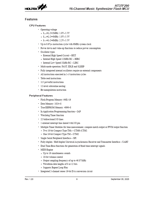 HT37F290 Key Features