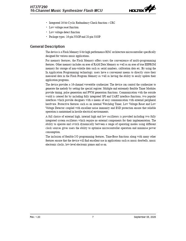 HT37F290 Description
