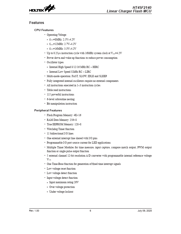HT45F2140 Key Features