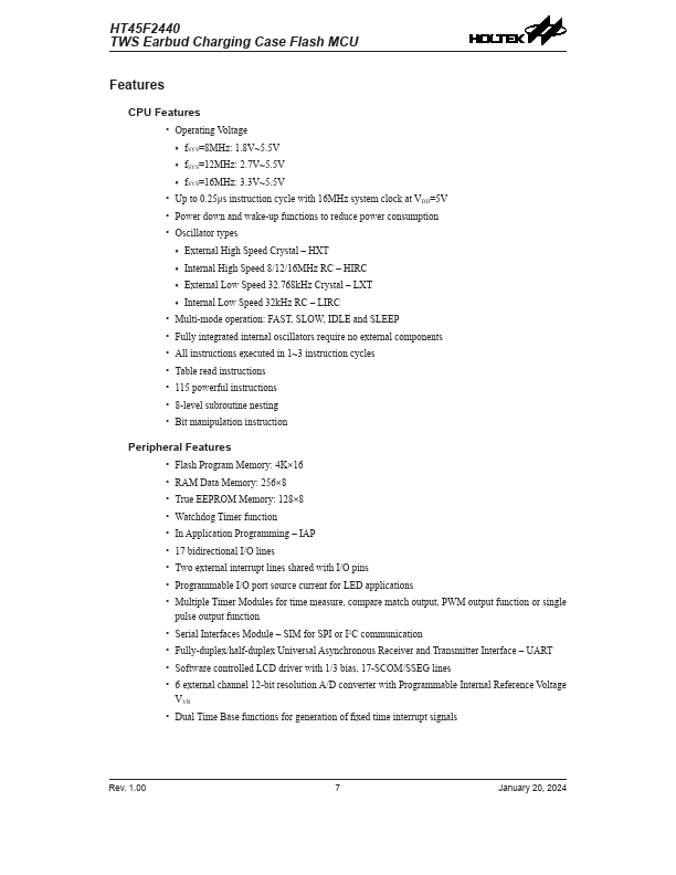 HT45F2440 Key Features