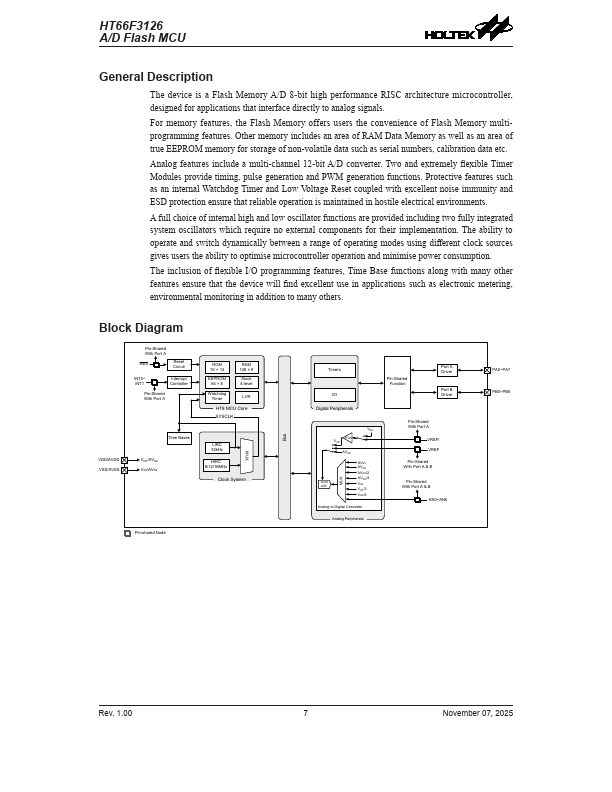 - 7 external channel 12-bit resolution A/D converter with internal reference voltage VVR