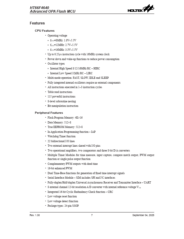 - Up to 0.25μs instruction cycle with 16MHz system clock