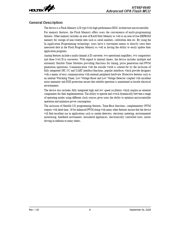 The device is a Flash Memory A/D type 8-bit high performance RISC architecture microcontroller.