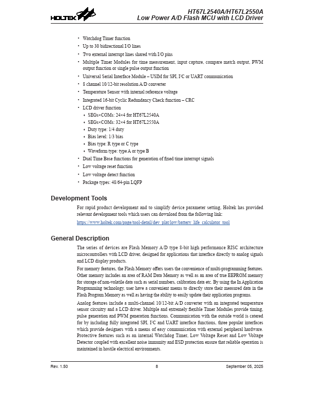 HT67L2550A Key Features