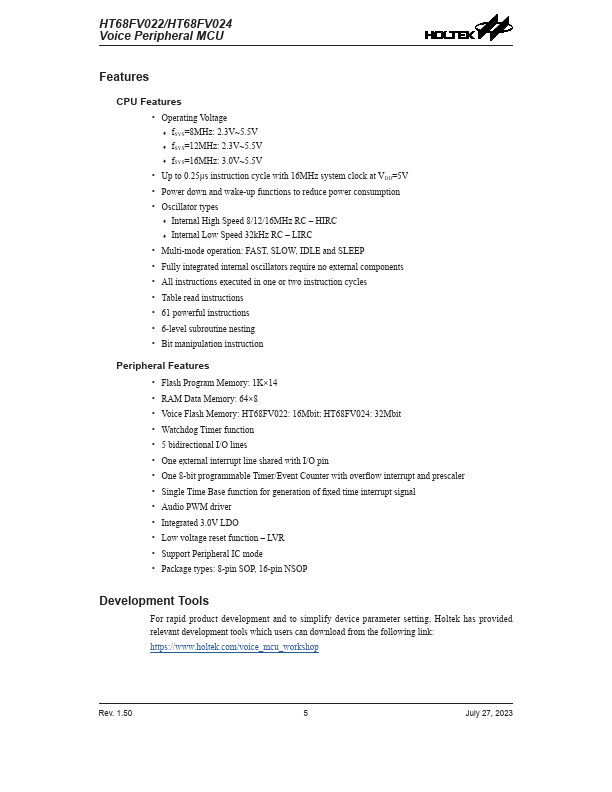 HT68FV022 Key Features
