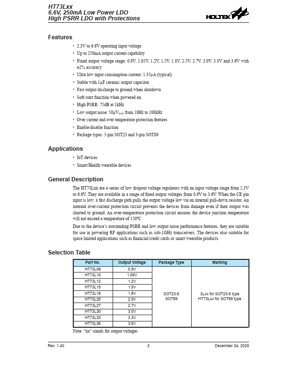 - Stable with 1µF ceramic output capacitor