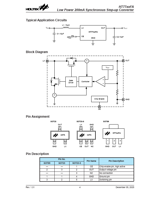 - Package types: 3-pin SOT89, 3-pin SOT23 and 5-pin SOT23