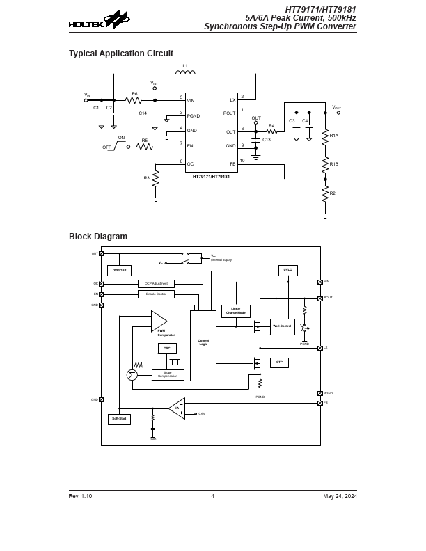 - Internal Ultra-Low Power Switches: 25mΩ/45mΩ (HT79171) and 20mΩ/40mΩ (HT79181) at 5.0V