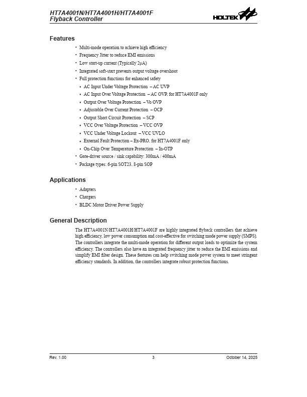 - AC OVP, for HT7A4001F only