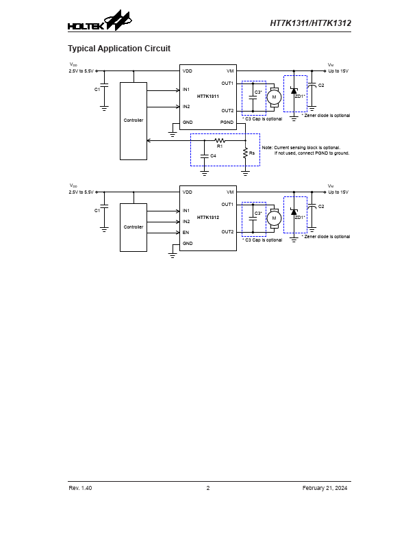 - HT7K1311: Automatically entering Sleep Period by resetting both IN1 and IN2 pins for over 10ms