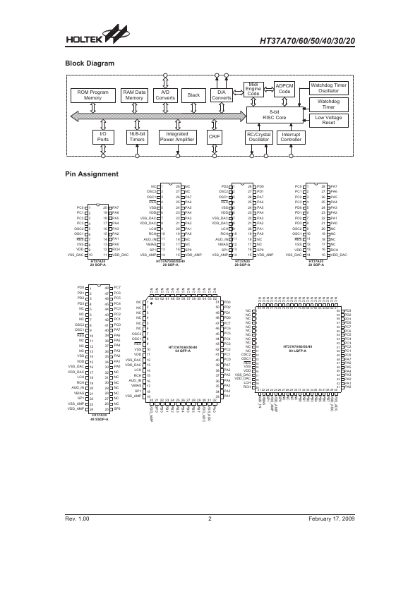 - Built-in 8-bit MCU (HT-8) with 320´8 bits RAM