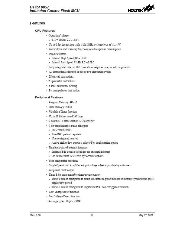 HT45F0057 Key Features