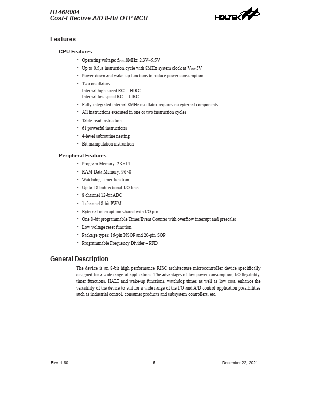 HT46R004 Description