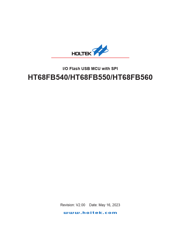 The HT68FB540, HT68FB550 and HT68FB560 are Flash Memory I/O with USB type 8-bit high performance RISC architecture microcontrollers, designed for applications that interface directly to which require an USB interface. Offering users the convenience of Flash Memory multiprogramming.