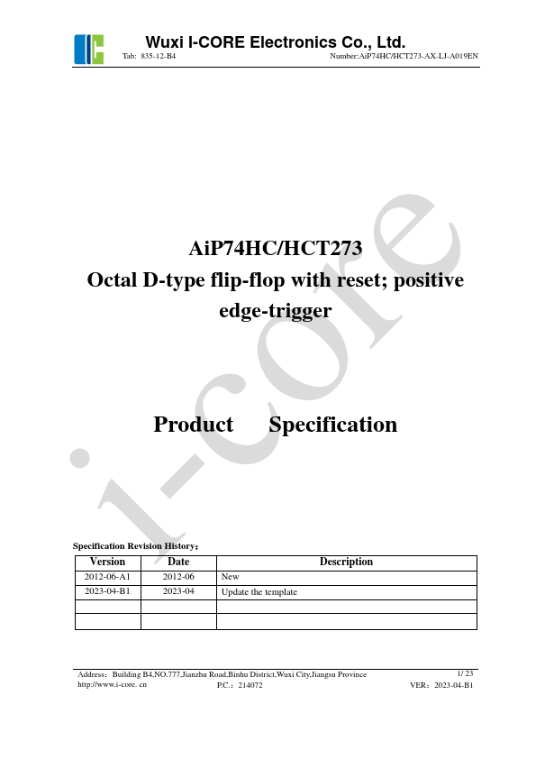 2012-06-A1 2012-06 New 2023-04-B1 2023-04 Update the template Address:Building B4,NO.777,Jianzhu Road,Binhu District,Wuxi City,Jiangsu Province http://www.i-core. cn P.C.:214072 1/ 23 VER:2023-04-B1 Wuxi I-CORE Electronics Co., Ltd.