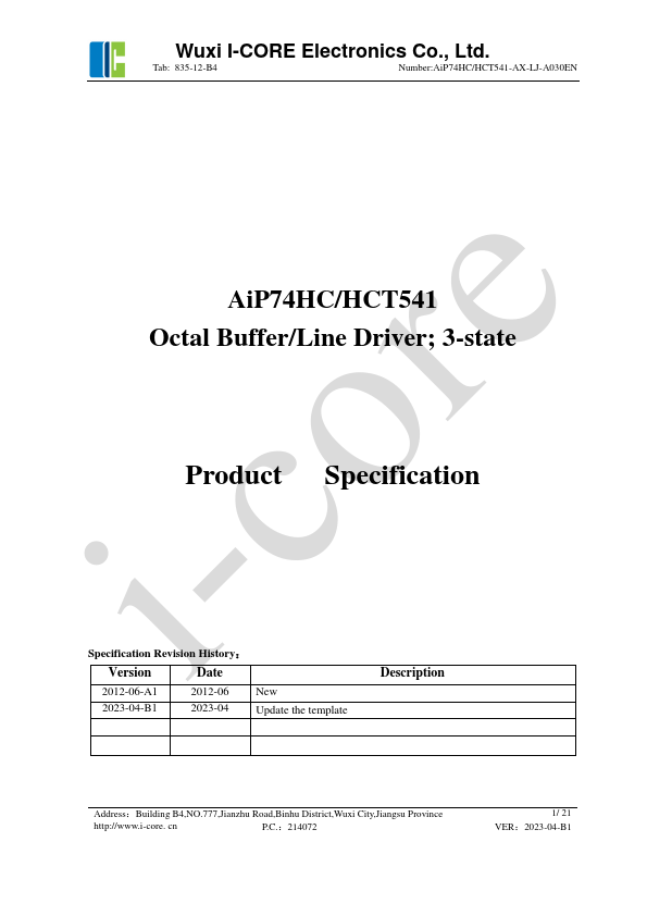 2012-06-A1 2012-06 New 2023-04-B1 2023-04 Update the template Address:Building B4,NO.777,Jianzhu Road,Binhu District,Wuxi City,Jiangsu Province http://www.i-core. cn P.C.:214072 1/ 21 VER:2023-04-B1 Wuxi I-CORE Electronics Co., Ltd.