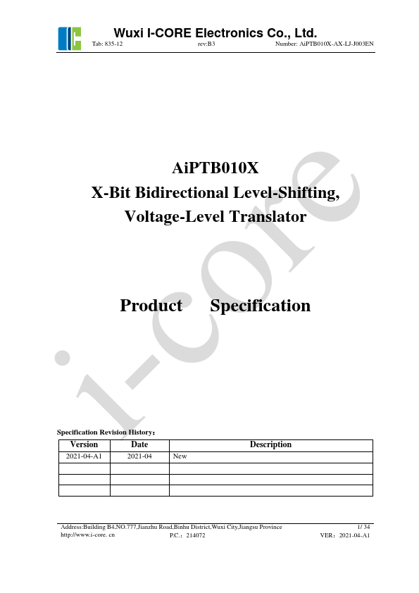 2021-04-A1 2021-04 New Address:Building B4,NO.777,Jianzhu Road,Binhu District,Wuxi City,Jiangsu Province http://www.i-core. cn P.C.:214072 1/ 34 VER:2021-04-A1 Wuxi I-CORE Electronics Co., Ltd.