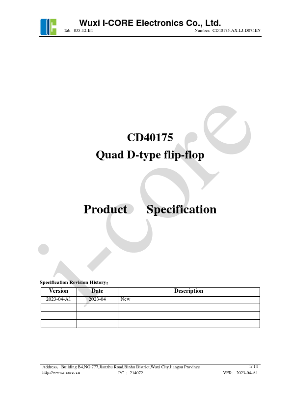 Address:Building B4,NO.777,Jianzhu Road,Binhu District,Wuxi City,Jiangsu Province http://www.i-core. cn P.C.:214072 1/ 14 VER:2023-04-A1 Wuxi I-CORE Electronics Co., Ltd.