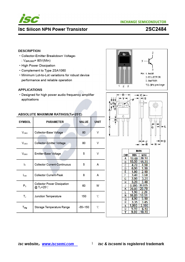 C2484 Datasheet | Inchange Semiconductor