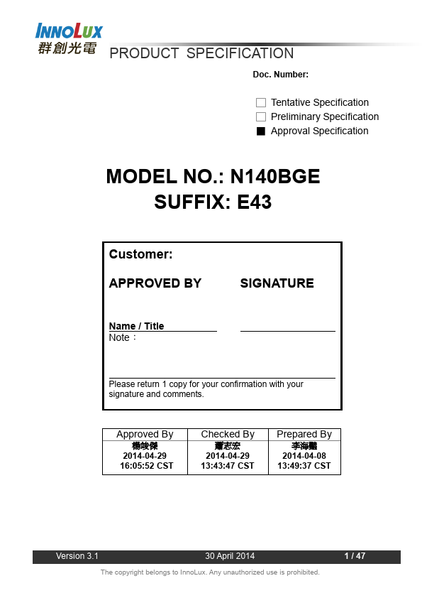 N140BGE-E43 Description