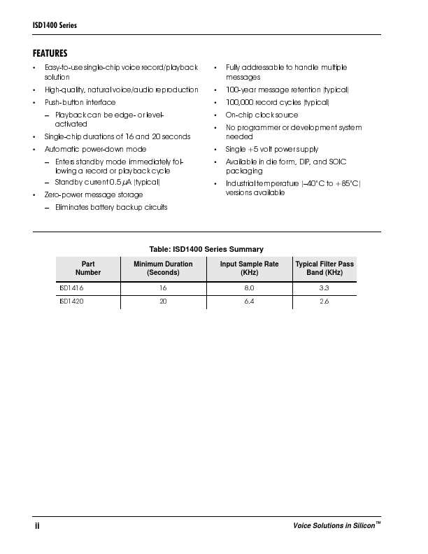 | Datasheet | ISD1420 ISD1416 Datasheet (PDF) |