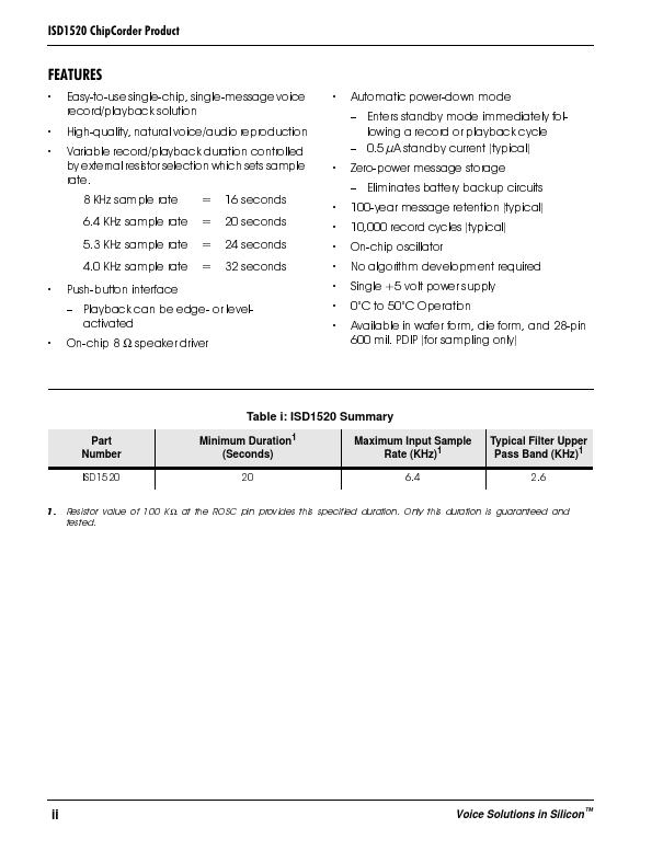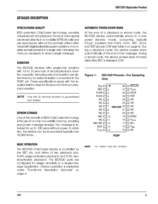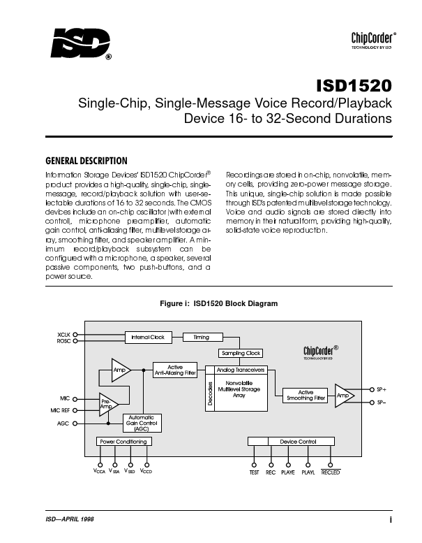 ISD1520 datasheet by ISD.