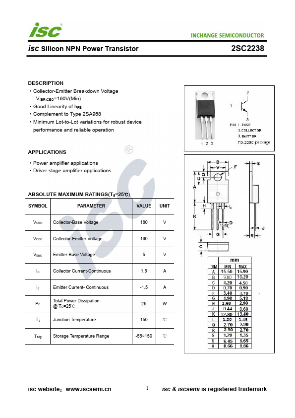 1 isc & iscsemi is registered trademark isc Silicon NPN Power Transistor