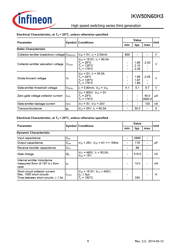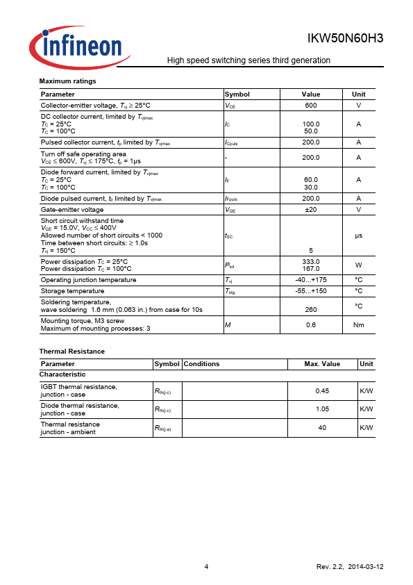K50H603 Infineon Datasheet