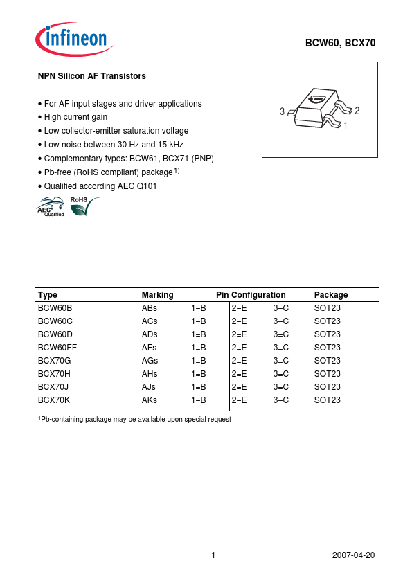 | BCW60 | NPN Silicon AF Transistors |
