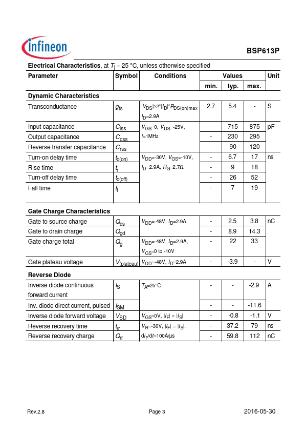 ID=2.9 A , VDD=-25V, RGS=25Ω