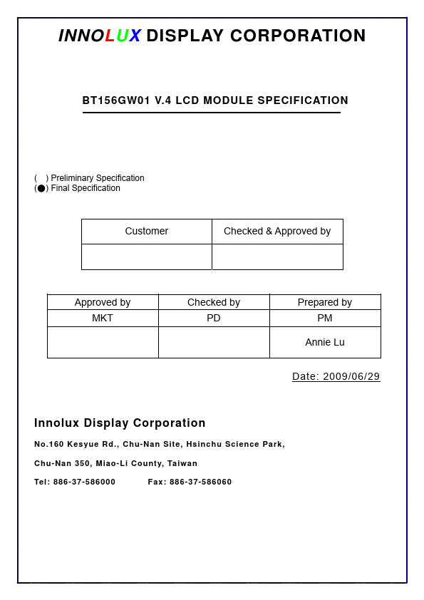 BT156GW01-V4 Description