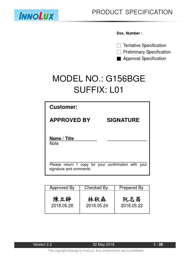G156BGE-L01 Description