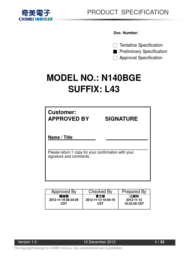 N140BGE-L43 Overview