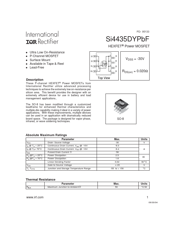| Si4435DY | 30V P-Channel MOSFET | Vishay |